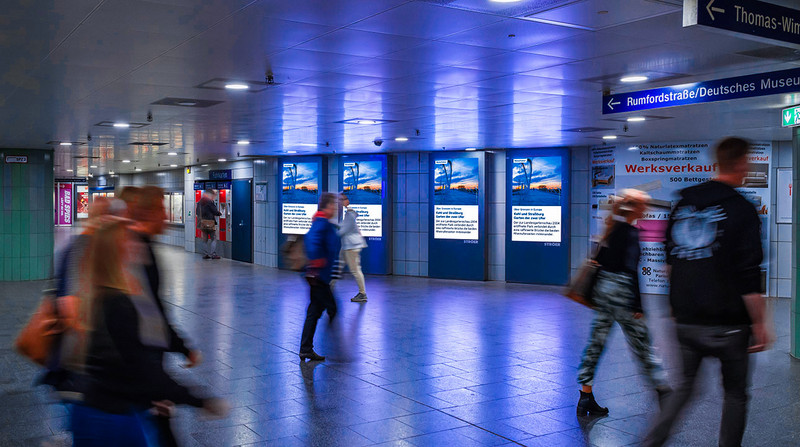 Ob am Bahnhof, auf belebten Straßen, im Einkaufszentrum oder direkt am Point of Sale – unsere Public Video Screens fügen sich nahtlos in den Alltag ein. Sie bieten inspirierende Inhalte und schaffen dabei Berührungspunkte, die Ihre Zielgruppe genau dort erreichen, wo sie sich bewegt und offen für neue Eindrücke ist.
